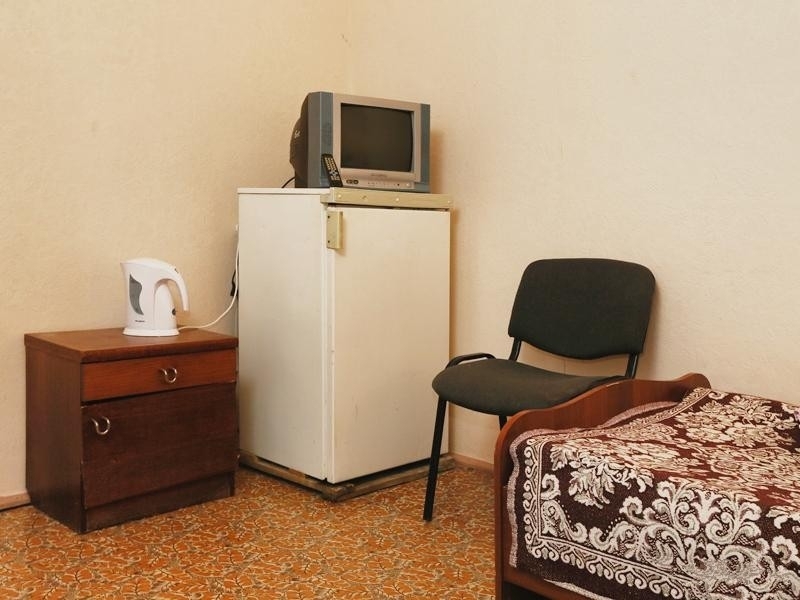 Оснащение номера: односпальная кровать, стол, стул, тумбочка, шкаф, телевизор, холодильник, доп.место - евро раскладушка