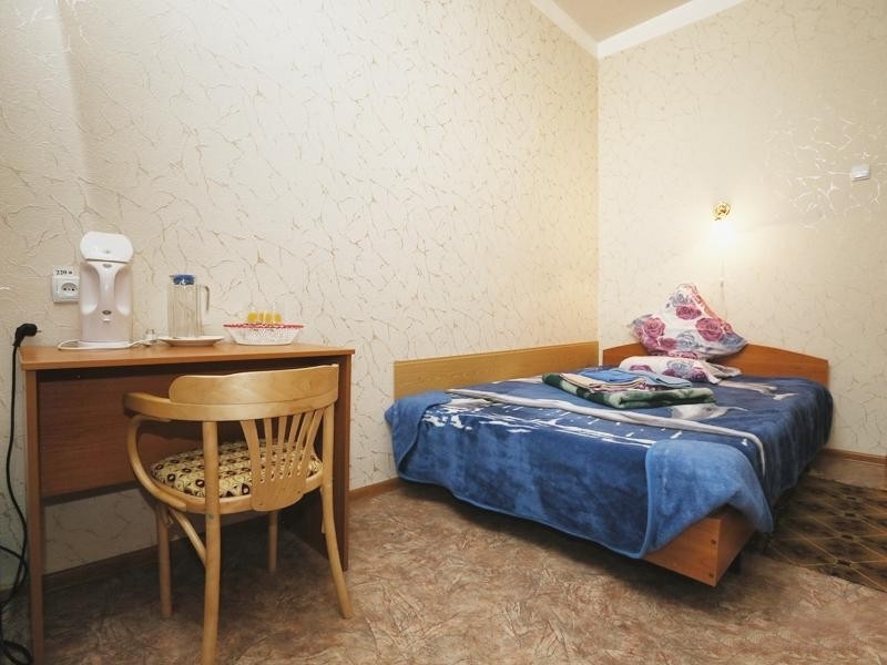 Оснащение номера: полутораспальная кровать, стол, стул, тумбочка, шкаф, телевизор, холодильник, доп.место - евро раскладушка и размещение ребенка до 5 лет без места